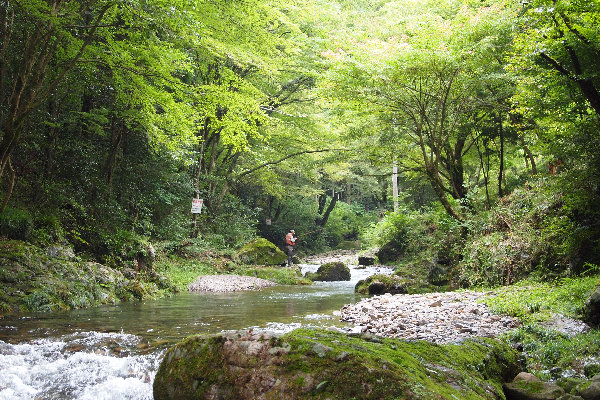 からエントリー・・・下流部の気温は31度、中流部は渓に入れば27度・・まあまあの涼しさです・・・