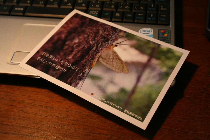 養沢からハガキが届きました。「虫を美しいと思うのは釣り人の特権」・・・ だってさ!