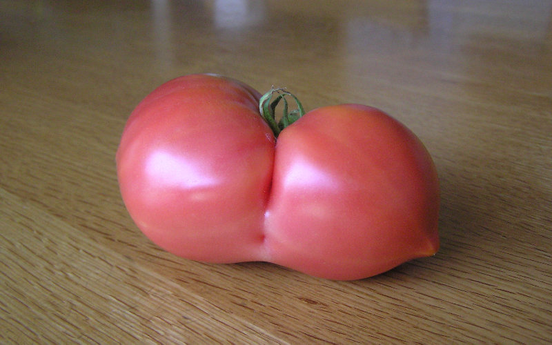 庭のすみで育てたトマト・・・ナンカ変デス。 いろいろなモノに想像できますが・・・ ・・・・・・ヤーネ。