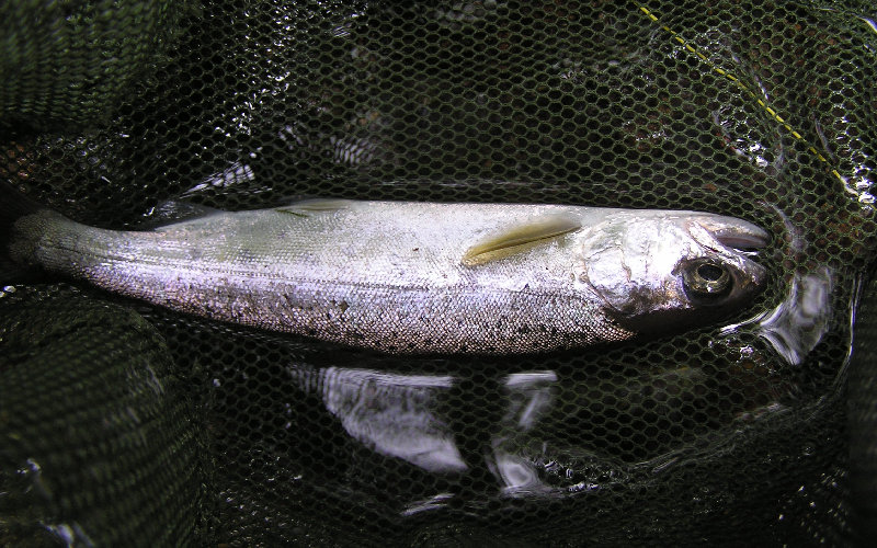 本流は久しぶり・・・水温高くコンディションは最悪、釣果はハヤ2匹と惨敗で私は午前中に帰宅。