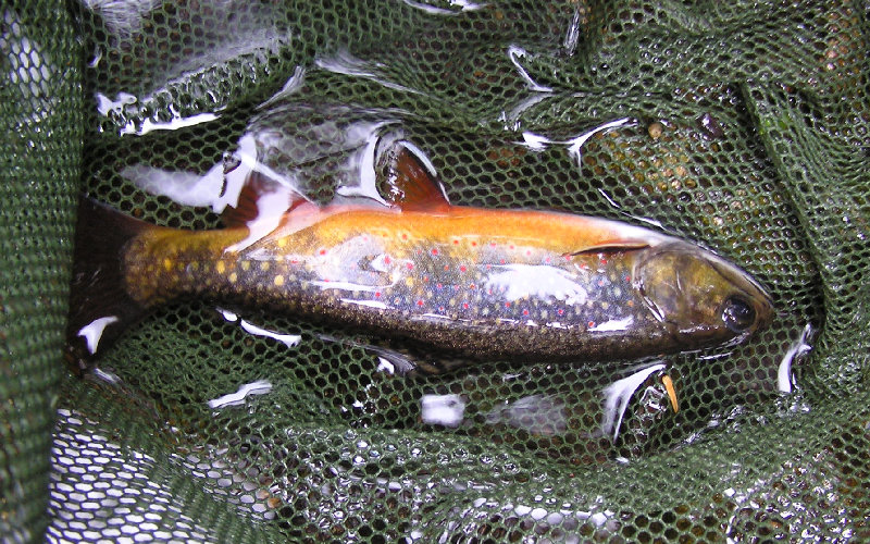 午前中は下流部でハヤの猛攻の中、2匹のブルック、午後は上流部でブルック