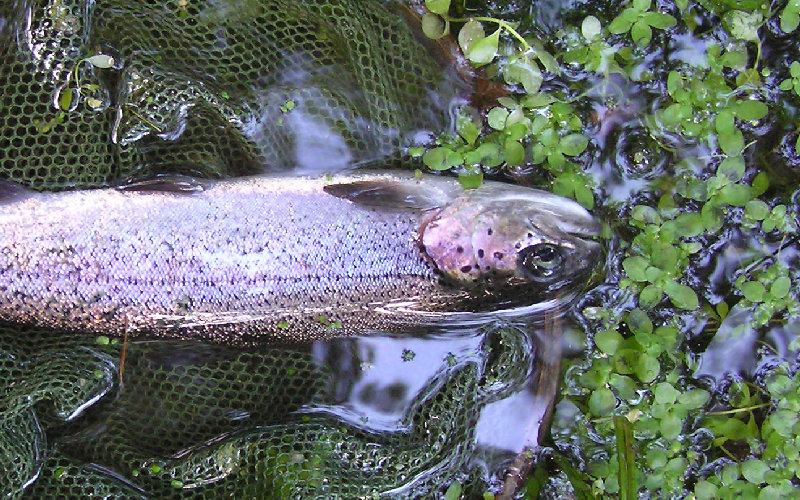 九月に入っても今年の忍野はまだまだ暑い。魚の活性は渋く・・午前中の釣果は虹君ばかり。